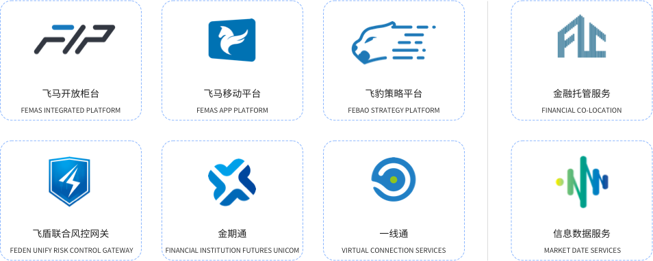 以便利機(jī)構(gòu)客戶參與金融期貨市場(chǎng)、助力金融期貨市場(chǎng)發(fā)揮風(fēng)險(xiǎn)管理功能為目標(biāo),具體包括:飛豹做市商平臺(tái)、飛馬證券版、飛盾風(fēng)控網(wǎng)關(guān)等。